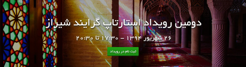 دومین رویداد استارتاپ گرایند شیراز پنجشنبه ۲۶ شهریور ماه ۱۳۹۴ با حضور آقایان رضا دهقانیان و حامد اختری از بنیانگذاران