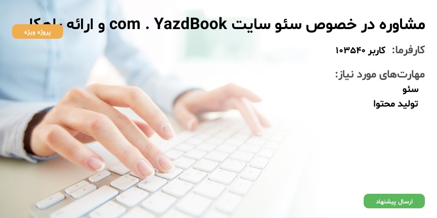 نیاز به یک مشاور حرفه ای در زمینه سئو می باشد که بتواند سایت YazdBook.com را از منظر کلیه موارد سئو بررسی و راهکارهای لازم را بصورت گزارش ارائه دهد.