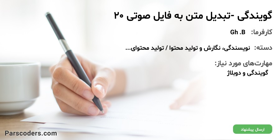 من نیاز به فردی حرفهای و خوش صدا دارم که متن ضمیمه شده رو برام بخونه و فایل صوتی رو بهم تحویل بده.