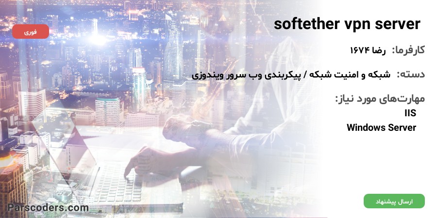 لطفا درصورتی که با نرم افزار Softether vpn server آشنایی دارید پیشنهاد ارسال کنید . هزینه مورد نظر من برای انجام این پروژه 50 هزار تومان میباشد .