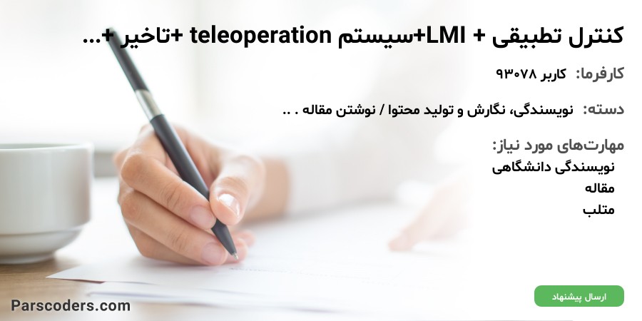 انجام مقاله علمی پژوهشی در زمینه رباتیک (سیستم teleoperation) و اعمال کنترل کننده روی آن در زمان تاخیر در حد ژورنال تبریز