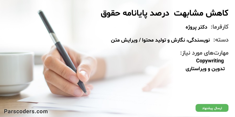 سلام یه پایانامه دارم که درصد اصالت سنجی براش 50 به بالا اومده می خوام کسایی که مهارت دارند خوب برام ویرایشش بزنن برای فردا صبح باید حتمآ تحویل بدم تا وقت دفاع بگیرم خواهشآ کسایی که مهارت دارند و می تونند جملات رو خوب ویرایش کنند پیشنهاد بدن از کسایی که مهارت ندارند خواهش می کنم پیشنهاد ندن چون خیلی ضروریه باید فردا تحویل بدم و حوصله دردسر ندارم