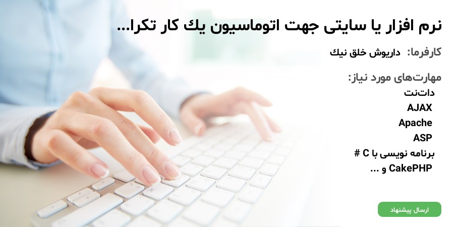 متأسفانه مهلت ارسال پیشنهاد این پروژه به پایان رسیده و پروژه بسته شده است؛ اما فرصتهای متعددی در سایت موجود میباشد.