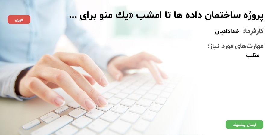 متأسفانه مهلت ارسال پیشنهاد این پروژه به پایان رسیده و پروژه بسته شده است؛ اما فرصتهای متعددی در سایت موجود میباشد.