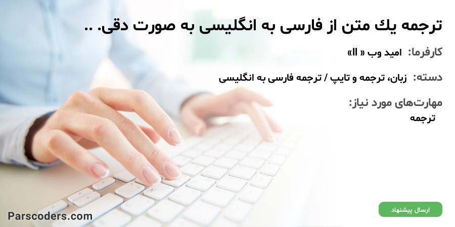 با سلام . یک متن هست میخوام ترجمه بشه 1112 کلمه هست . بصورت دقیق و حرفه ای / یک مورد که باید بگم : این مورد خیلی برام مهمه هم هزینه و هم کیفیت . اگر کار خوب انجام بشه بدون شک مشتری خودتون میشم