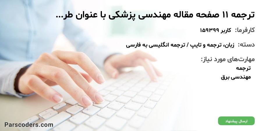 مقاله بنده در حوزه رشته مهندسي پزشكيست و در مورد دست مصنوعي. متقاضي ترجمه متن بِه صورت روان هستم و تصاوير متن هم در ترجمه موجود باشد و سر وقت تحويل داده شود