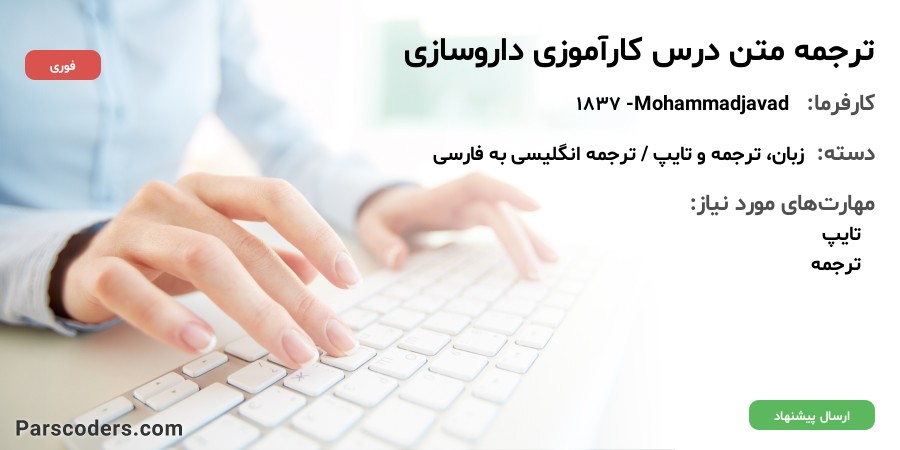 یک متن ۱۹ صفحه ای ترجمه درس کارآموزی داروسازی هست که باید دقیق و بدون اشتباه ترجمه بشه
