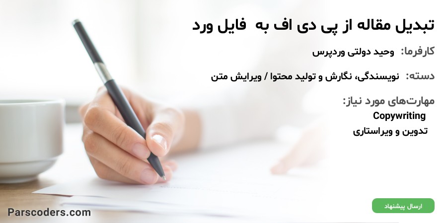 سلام سه تا مقاله داریم جمعا 57 صفحه میشه که میخوایم به ورد تبدیل شه یعنی باز نویس بشه ندین لطفا همگی فارسی هستن بدون جدول فرمول