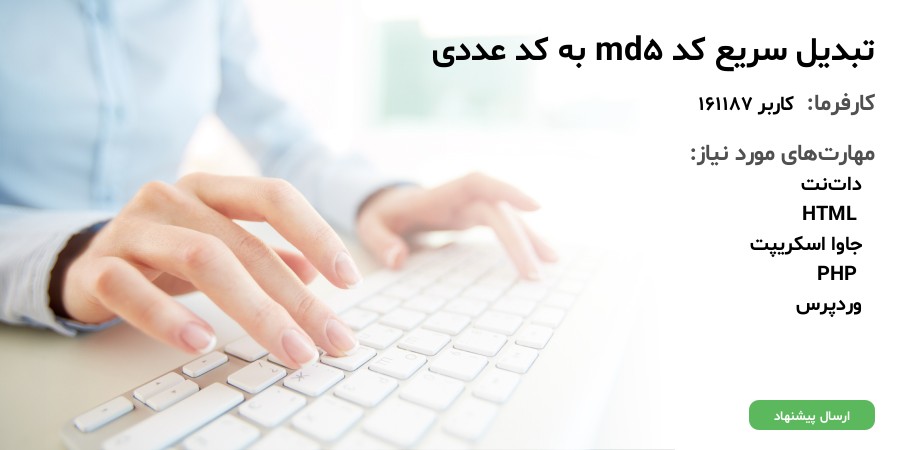 سلام ازتون درخواست دارم که با فرمول نویسی اکسل کد md5 رو سریع تبدیل بشه به کد عددی یابرنامه ای طراحی کنید که همین کاررو انجام بده