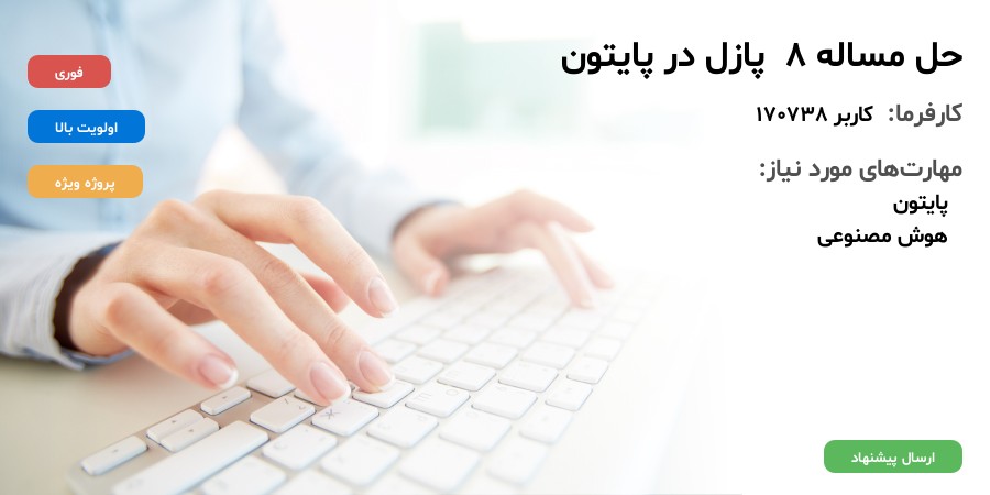متأسفانه مهلت ارسال پیشنهاد این پروژه به پایان رسیده و پروژه بسته شده است؛ اما فرصتهای متعددی در سایت موجود میباشد.