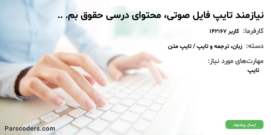 نیازمند تایپ فایل صوتی، محتوای درسی حقوق بمدت رویهم رفته 20 دقیقه هستم.