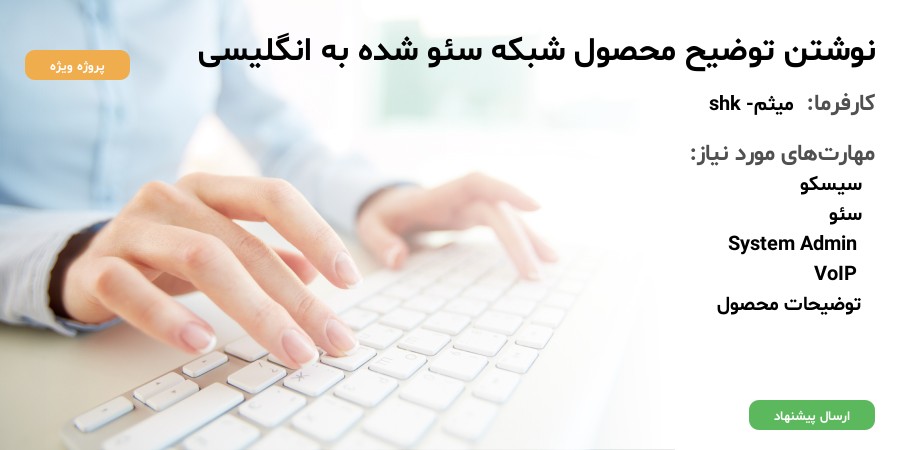 برای 200 محصول در وب سایت که شامل تجهیرات شبکه و آی تی میباشد توصیف و توضیح محصول کاملا سئو شده به انگلیسی می خواهیم . فری لنسر باید به زبان انگلیسی آشنایی کامل داشته باشد و با تجهیرات شبکه کامپیوتری هم آشنا باشد .
