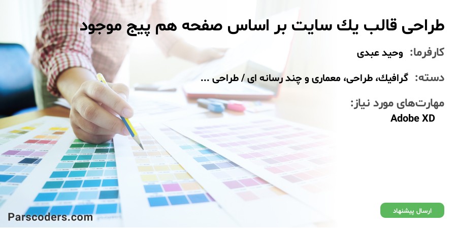 یک قالب طراحی برای صفحه اصلی در فرمت XD موجوده نیازمند فردی هستم مابقی صفحات رو طراحی کنه
