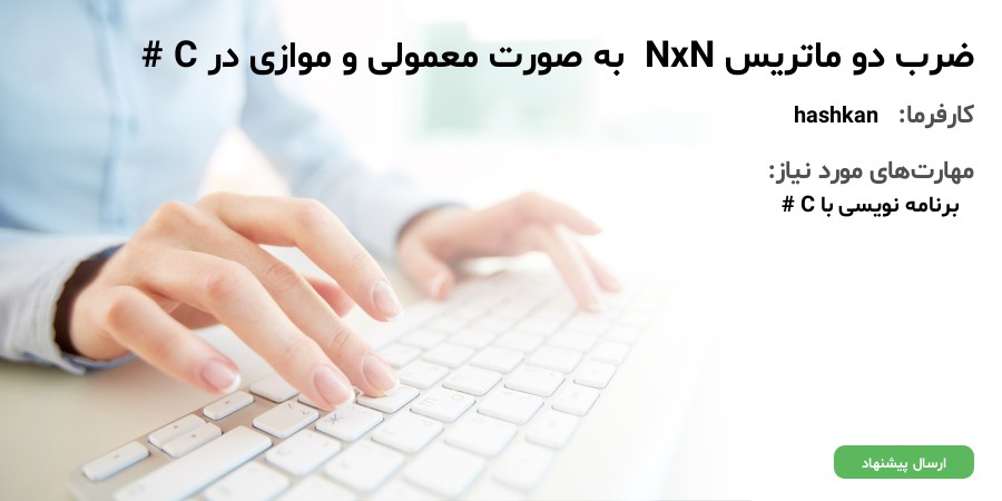 برنامه اي با C# براي ضرب ماتريس NxN که در مرحله اول يه صورت سري و در مرحله بعد به صورت موازي با قابليت اجرا بر روي P پردازنده انجام دهد
