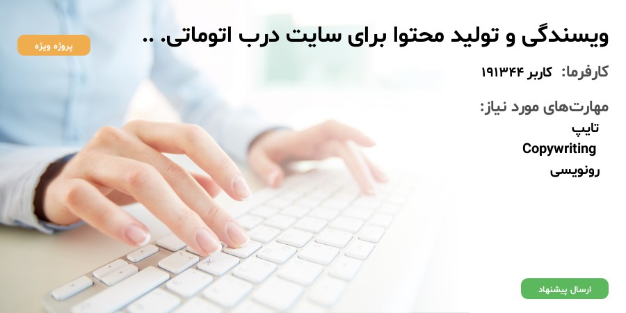 به دنبال فریلنسری هستم که بتونه توی حوزه ی نویسندگی و تولید مقاله ی نسبتا تخصصی وکاربردی در زمینه درب اتوماتیک و یراق آلات کمکمون کنه .