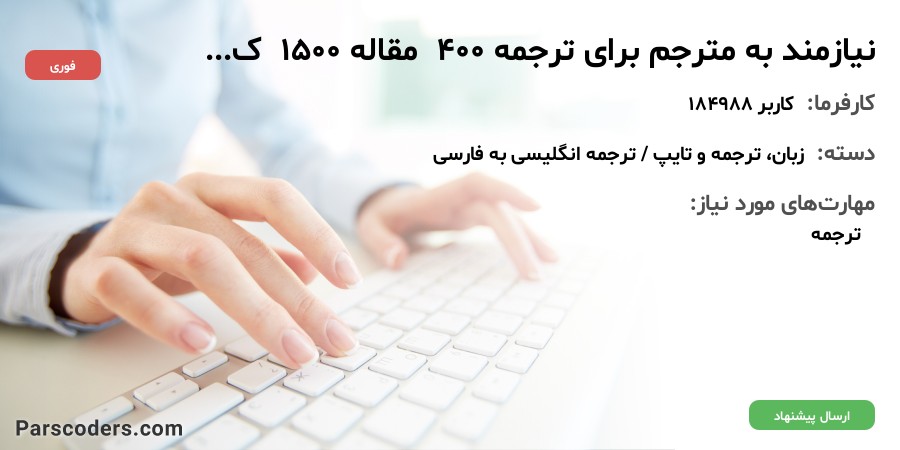 برای یکی از پروژه هام نیازمند مترجم قوی و مسلط به زبان انگلیسی هستم که بتواند ۴۰۰ مقاله ۱۵۰۰ کلمه ای را در مدت ۵ ماه برای بنده ترجمه کند