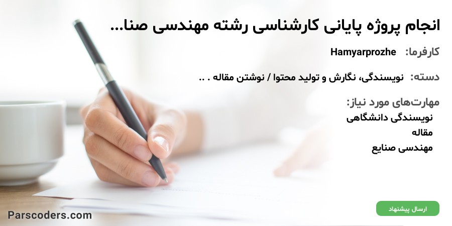 متأسفانه مهلت ارسال پیشنهاد این پروژه به پایان رسیده و پروژه بسته شده است؛ اما فرصتهای متعددی در سایت موجود میباشد.