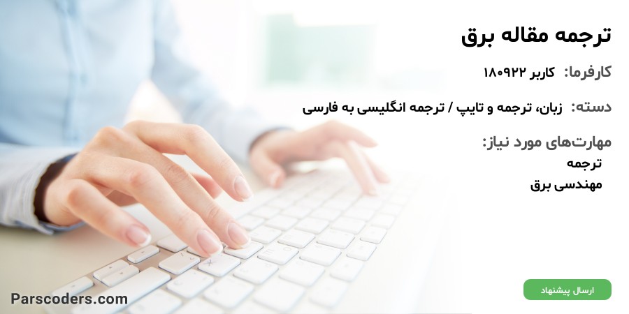 یک مقاله تخصصی برق مخابرات دارم که 4 صفحه هست که تقریبا یک صفحه ش فرمول هست و نصف یک صفحه هم فهرست پس لطفا مبلغ منصفانه پیشنهاد بدید می خوام به طور دقیق ترجمه شه و بدون استفاده از googletranslate لطفا قبل از دادن پیشنهاد مقاله رو چک کنید ممنون
