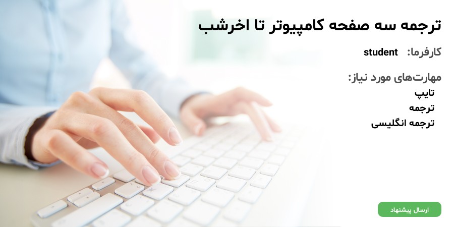 ترجمه سه صفحه کامپيوتر تا اخر شب دوستان ترجمه بايد خوانا و روان بدون استفاده از مترجم هاي انلاين باشد