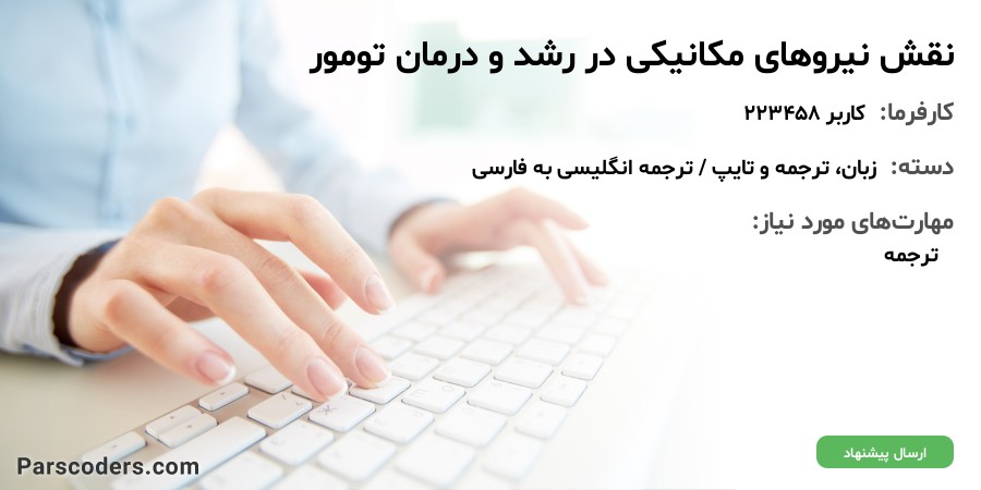 این پروژه مربوط به درس مکانیک سیالات می باشد و موضوع آن The role of mechanical forces in tumor growth and therapy ( نقش نیروهای مکانیکی در رشد و درمان تومور) می باشد. و اینکه میخوایم ترجمه تا صفحه ۲۰ انجام بشه .