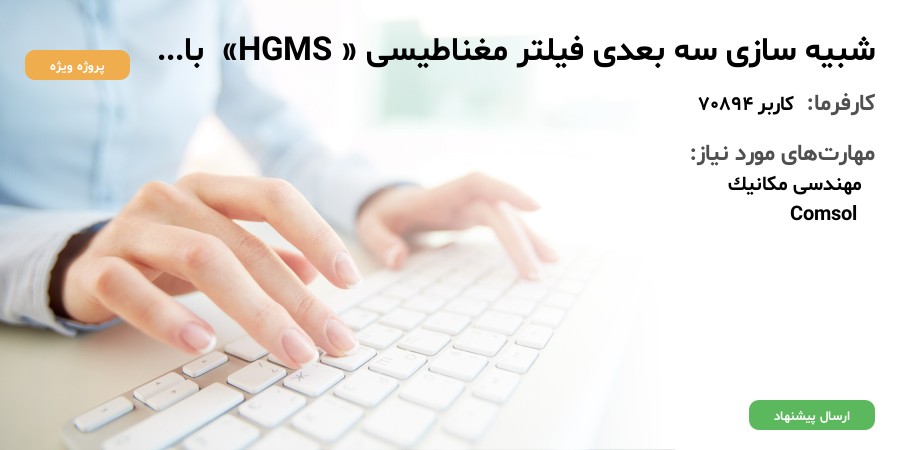 شبیه سازی یک فیلتر مغناطیسی می باشد.که با عنوان فیلتر های HGMS در صنعت شناخته می شود که معمولا در صنایع نفت و گاز استفاده می شود. این شبیه سازی درنرم افزار کامسول 5.3.3 صورت گرفته که در فیزیک جریان سیال آرام ،میدان مغناطیسی به صورت مستقل از زمان و مسیر ذره که وابسته به زمان می باشد . که چهار عدد میله از فوالاد زنگ نزن در یک کانال با ابعاد مناسب می باشد جنس ذره ها از ذرات کننده شده از داخل لوله با قطر های بین 0.2 تا1 میکرون می باشد .