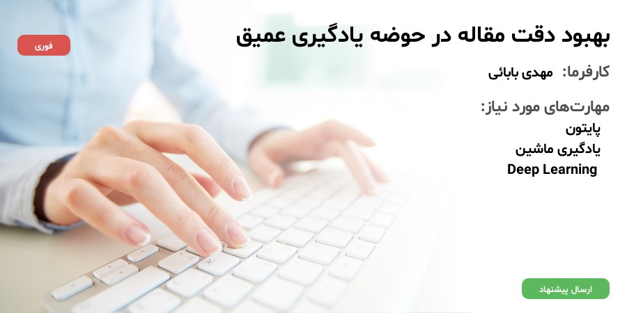 متأسفانه مهلت ارسال پیشنهاد این پروژه به پایان رسیده و پروژه بسته شده است؛ اما فرصتهای متعددی در سایت موجود میباشد.