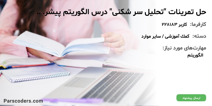به پيوست سوالات تمرين الگوريتم ها پيشرفته خدمتتان ارسال مي گردد. ضمن حل مساله به صورت واضح و طبق سوال تمرين، توضيحات تکميلي حل مساله در حد حداقل 5 خط براي هر سوال ذکر شود. تمامي متون حل مساله و توضيحات تکميلي به صورت فايل word بايد باشد. مهلت دريافت جواب ها تا 8 صبح روز دو شنبه 24 آذر 99 مي باشد.