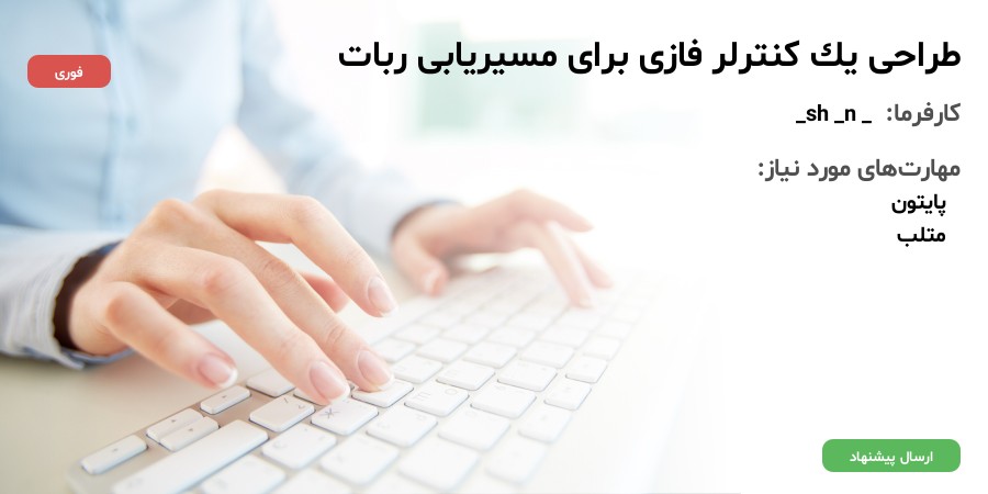پروژه درخواستی با موضوع طراحی یک کنترلر فازی برای مسیریابی رباتاست و چه با متلب و چه با پایتون زده شود مساله ای نیست . مهلت تحویل این پروژه تا ۳۰ آذر ماه است . تمام توضیحات مربوط به پروژه در فایل ضمیمه داده شده است