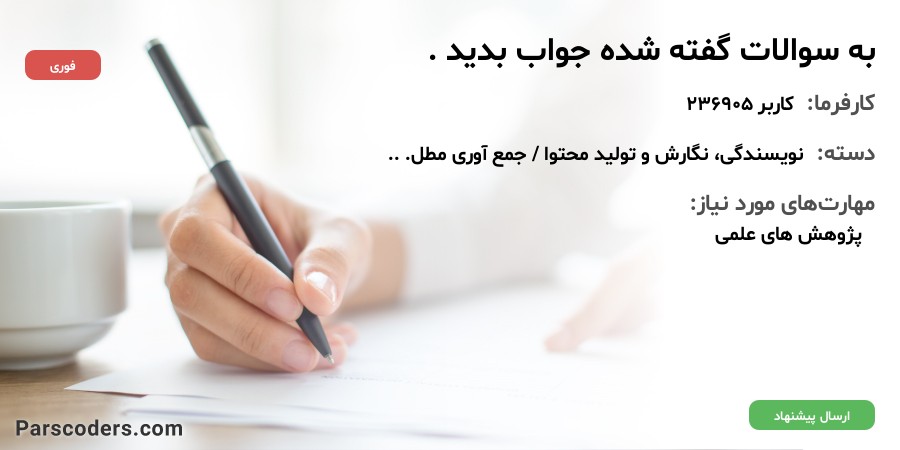متأسفانه مهلت ارسال پیشنهاد این پروژه به پایان رسیده و پروژه بسته شده است؛ اما فرصتهای متعددی در سایت موجود میباشد.