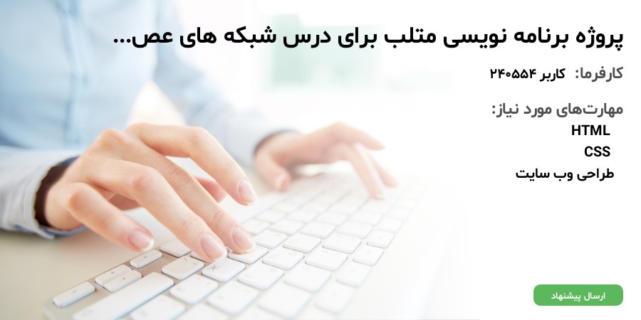 متأسفانه مهلت ارسال پیشنهاد این پروژه به پایان رسیده و پروژه بسته شده است؛ اما فرصتهای متعددی در سایت موجود میباشد.