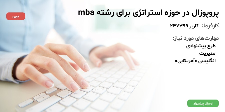 یک پروپوزال برای رشته mba در حوزه استراتژی (مارکتینگ یا مالی یا انسانی یا ...) به صورت فوری
