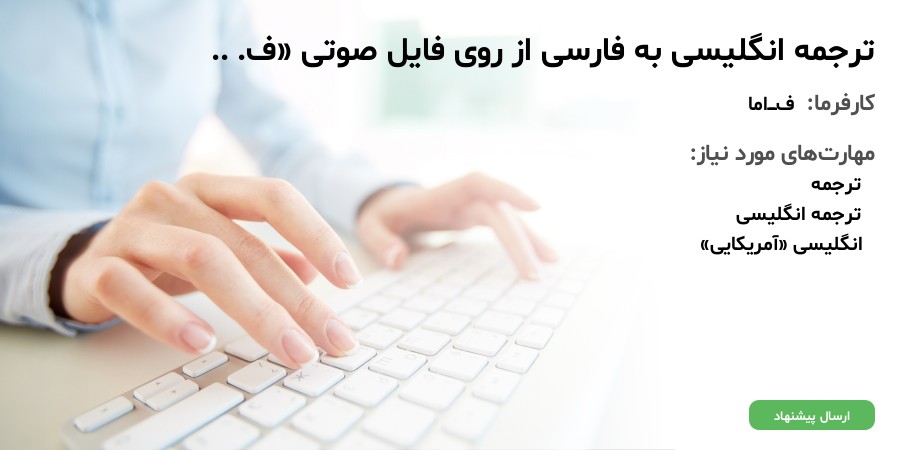 با سلام خدمت شما دوستان و بزرگواران حدود 420 ساعت فايل صوتي انگليسي موجود مي باشد که به دنبال متخصصي هستيم که بتواند آن را براي ما به فارسي ترجمه نمايد. ترجمه روان و دقيق مهم نيست که حتما متن پس از ترجمه تايپ گردد حتي به صورت دست نويس خوانا باشد نيز کافي است. زمان و قيمت براي ما مهم هست. دوستان در صورت تمايل قيمت هاي پيشنهادي خود،رزومه،و زمان لازم براي تقريبا هر 1 ساعت فايل صوتي را ارسال بفرماييد. حوزه نرم افزار و وب ، عمومي منتظر دريافت پيشنهاداتتان هستم.