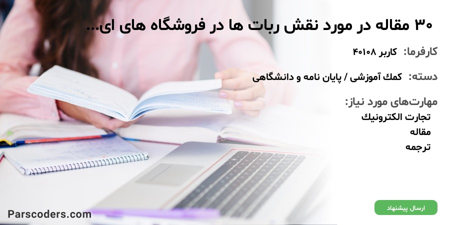 نیاز به 30 عدد مقاله به زبان فارسی دارم که در مورد نقش ربات ها در فروشگاه های اینترنتی هستش