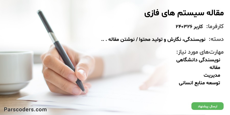 متأسفانه مهلت ارسال پیشنهاد این پروژه به پایان رسیده و پروژه بسته شده است؛ اما فرصتهای متعددی در سایت موجود میباشد.
