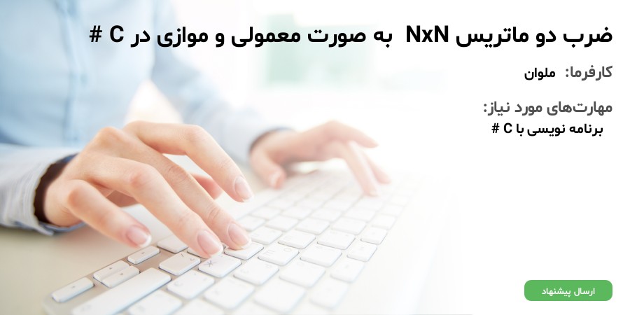 برنامه اي با C# براي ضرب ماتريس NxN که در مرحله اول يه صورت سري و در مرحله بعد به صورت موازي با قابليت اجرا بر روي P پردازنده انجام دهد
