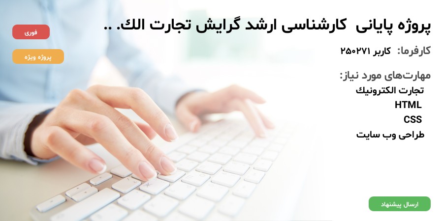 متأسفانه مهلت ارسال پیشنهاد این پروژه به پایان رسیده و پروژه بسته شده است؛ اما فرصتهای متعددی در سایت موجود میباشد.
