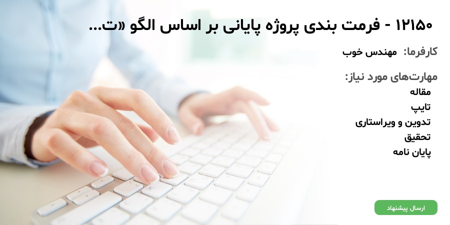 متأسفانه مهلت ارسال پیشنهاد این پروژه به پایان رسیده و پروژه بسته شده است؛ اما فرصتهای متعددی در سایت موجود میباشد.