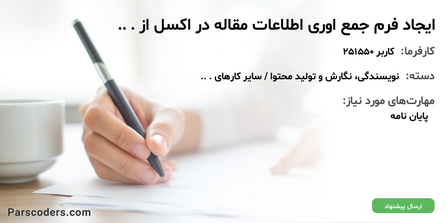 متأسفانه مهلت ارسال پیشنهاد این پروژه به پایان رسیده و پروژه بسته شده است؛ اما فرصتهای متعددی در سایت موجود میباشد.