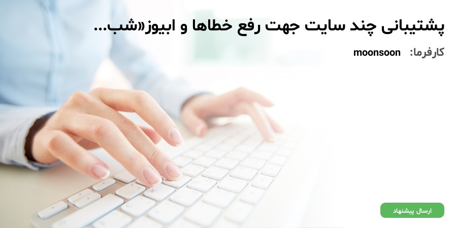 چند سورس کد نياز به آپلود و نگهداري جهت رفع خطاهاي سايت و خطاهاي سرور دارد قابل ذکر است سايتها به زبان اي اس پي نوشته شده اند از کساني که تمايل به همکاري دارند نياز به حضور در شرکت به صورت در هفته سه روز مي باشد و محل شرکت شهر شيراز مي باشد.