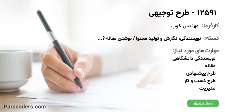 متأسفانه مهلت ارسال پیشنهاد این پروژه به پایان رسیده و پروژه بسته شده است؛ اما فرصتهای متعددی در سایت موجود میباشد.