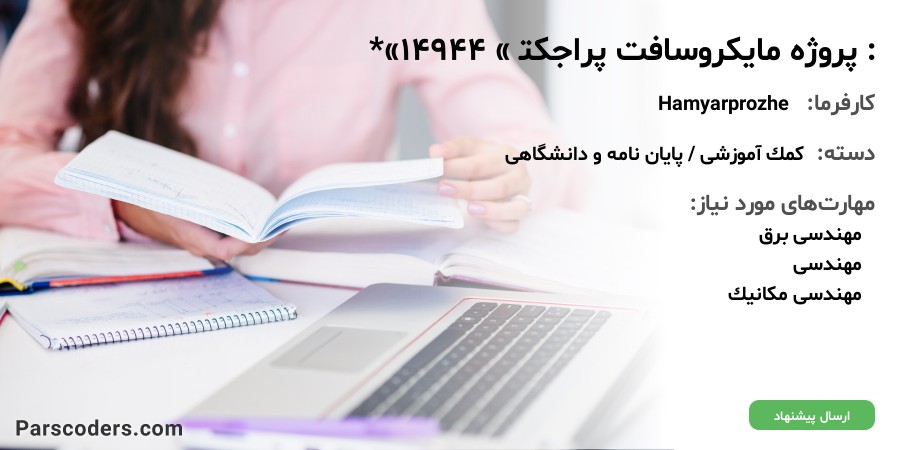 متأسفانه مهلت ارسال پیشنهاد این پروژه به پایان رسیده و پروژه بسته شده است؛ اما فرصتهای متعددی در سایت موجود میباشد.
