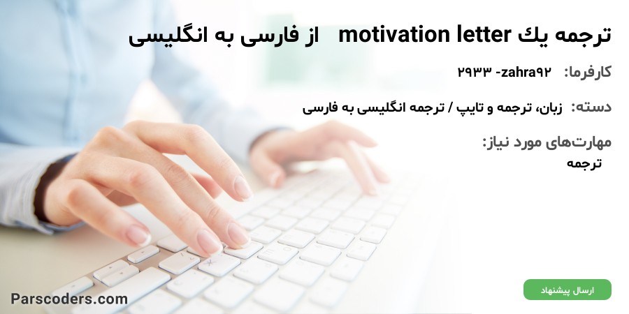 سلام وقت بخیر برای یک موتیویشین لرتر نیاز به ترجمه دارم هر کسی که در این زمینه حرفه ای هست بهم پیام بده که متن را بفرستم براشون