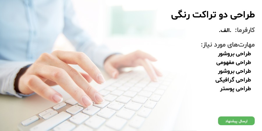 براي دو وب سايت زير نياز به تراکت پشت و رو رنگي داريم. تمامي ايده ها از انتخاب نوشته ها تا عکس ها و ... به انتخاب خودتون هست.مثلا مي تونيد يک طرف رو تبليغ کار کنيد و يک طرف رو نحوه دريافت خدمات از وب سايت سايز A5 .رنگي-پشت و رو هزينه به صورت توافقي هست و براي پرداخت مشکلي نيست. اما انتظار داريم که يک پيش طرح قبل از تصميم گيري و انتخاب تحويل بشه.منظور تنها يک ايده و طرح اوليه و خام هست براي مشاهده. وب سايت اول : http://goo.gl/JoJx3z وب سايت دوم : http://goo.gl/6cvGYH (به هيچ وجه خارج از پارس کدر پيشنهادي پذيرفته نخواهد شد ، همچنين بدون دريافت پيش طرح و قيمت امکان انتخاب وجود ندارد)