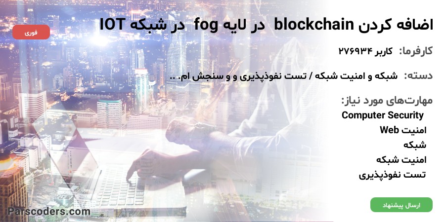 تعریف یک معماری در IOT که با استفاده ifogsim شبیه سازی بشه و لایه fog که blockchain در آن برای امنیت بیشتر لحاظ میشه پیاده سازی بشه