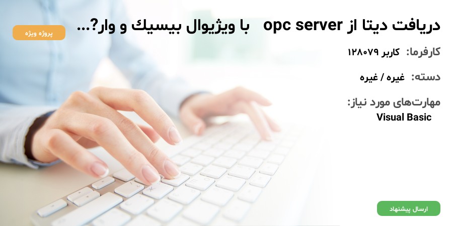 دریافت دیتا از opc server و ریختن دیتاها درون آرایه.فریلنسرهای محترم در صورت آشنایی با opc server یا داشتن پروژه قبلی در مورد opc این پروزه را قبول کنند با تشکر