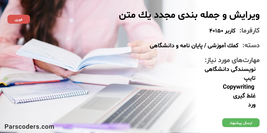 متأسفانه مهلت ارسال پیشنهاد این پروژه به پایان رسیده و پروژه بسته شده است؛ اما فرصتهای متعددی در سایت موجود میباشد.