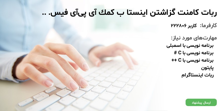 ربات اینستاگرام میخام ک پیج خودم برای پست های خودم کامنت بزاره و افراد رو توی کامنت تگکنه و با داشتن محدودیت های اینستا باید آی پی آی فیسبوک خریداری کنیم کسی ک میتونه آی پی آی فیسبوک برای کامنت گزاشتن خریداری کنه و ربات بسازه ک این کارو انجام بده درخواست بده ب غیر از قیمت توافقی بعد از انجامکار پاداش خوبی دریافت خواهید کرد.