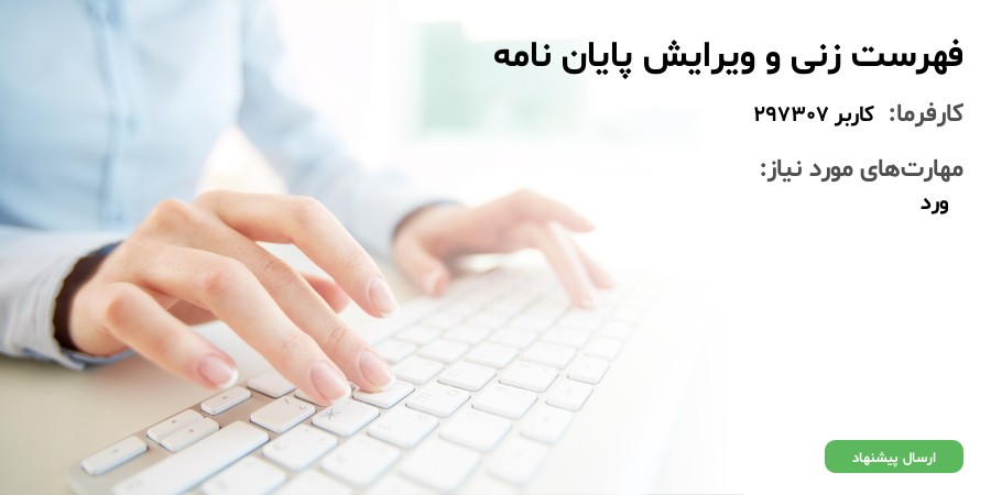 پروژه ی من ویرایش پایان نامه است که کامل نوشته شده و فقط باید در تمپلیت دانشگاه قرار بگیره و فهرست زنی جدول و اشکال و صفحات براش انجام بشه و ویرایش نگارشی بشه
