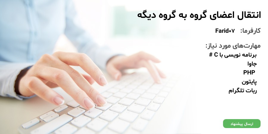 سلام وقت به خیر من به دنبال یه ربات یا نرم افزاری هستم که بتونه اعضای یک گروه رو به گروه خودم منتقل کنه لطفا قیمت هاتون رو بدین نجومی نباشه فقط!