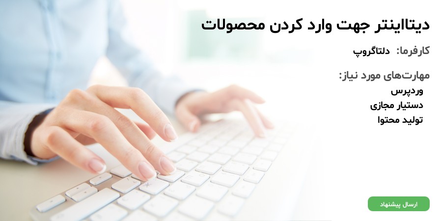 سلام، به یک دیتااینتر منظم و متعهد با آشنایی کامل به کار دیتا اینتری جهت ورود محصولات از سایر سایت های مشابه در سایت وردپرسی نیازمندیم.